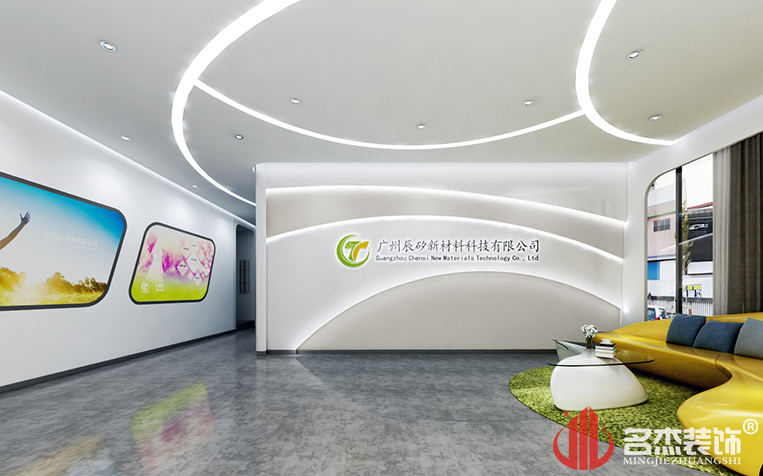 前臺運用大量的不規則圖形和線條來確定整體的時尚現代風格,勾勒出一種不規則的美。整個辦公室裝修設計風格里面也有所體現,突出企業文化,新材料公司辦公室裝修就是要打破常規,不走尋常路。